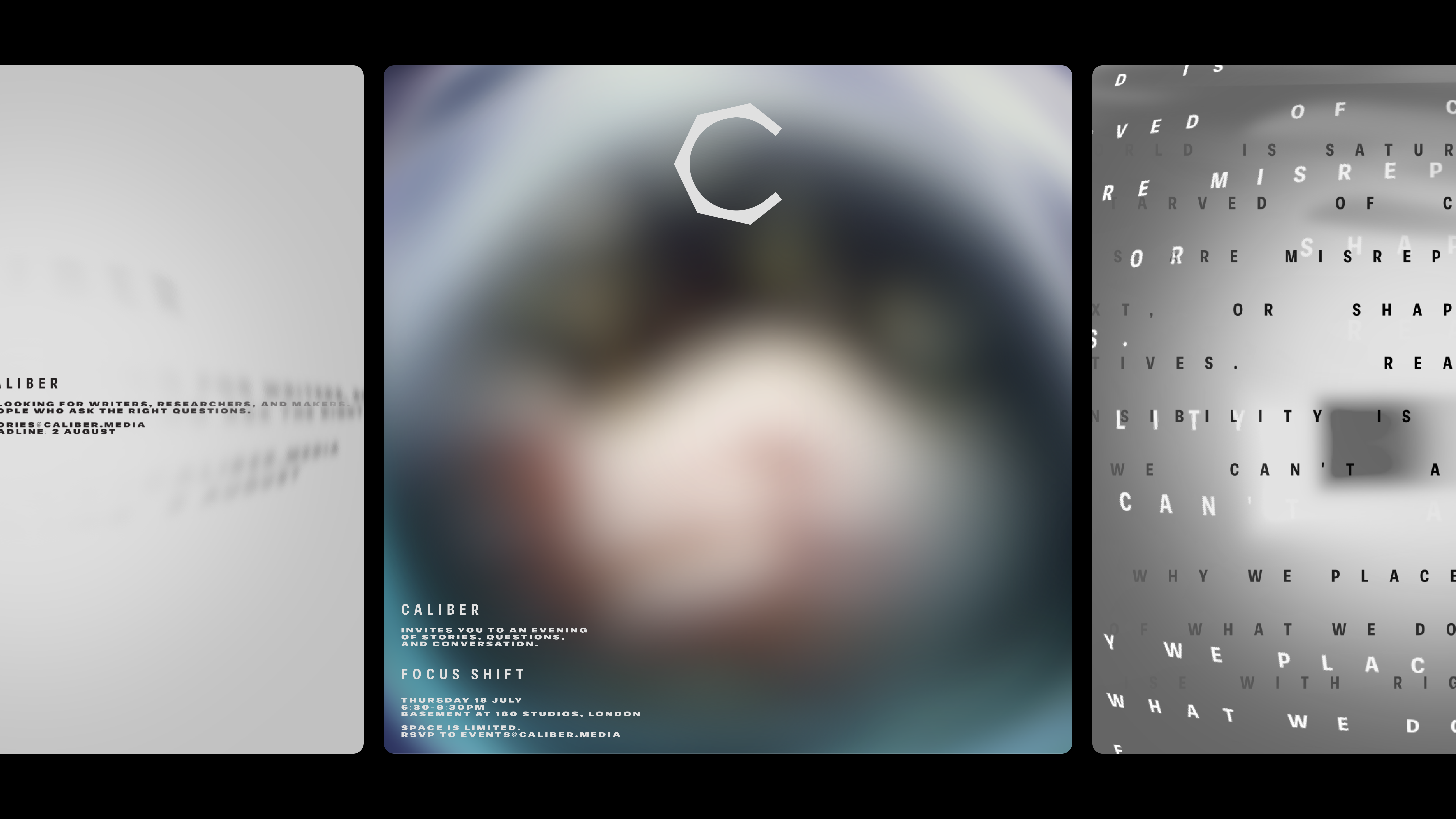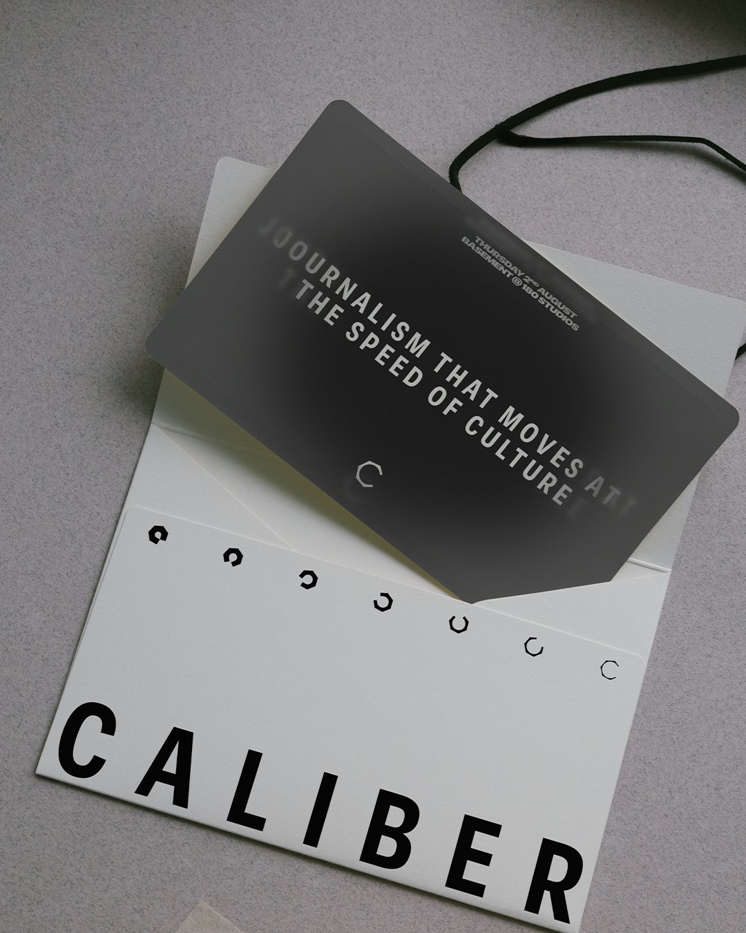 Creatively, Caliber cuts through the noise. We developed an identity built around the lens as a metaphor for editorial focus, pulling what matters into sharp clarity while letting distractions blur away. The aperture dial became the foundation for the mark, a symbol of precision and control. A visual system of layered typography and shifting-focus imagery reflects the process of shaping stories with integrity. Clean, architectural forms anchor corporate communications while textured treatments bring energy to live cultural moments. The result is a living brand designed to move with the news cycle, evolve with culture and always sharpen meaning.