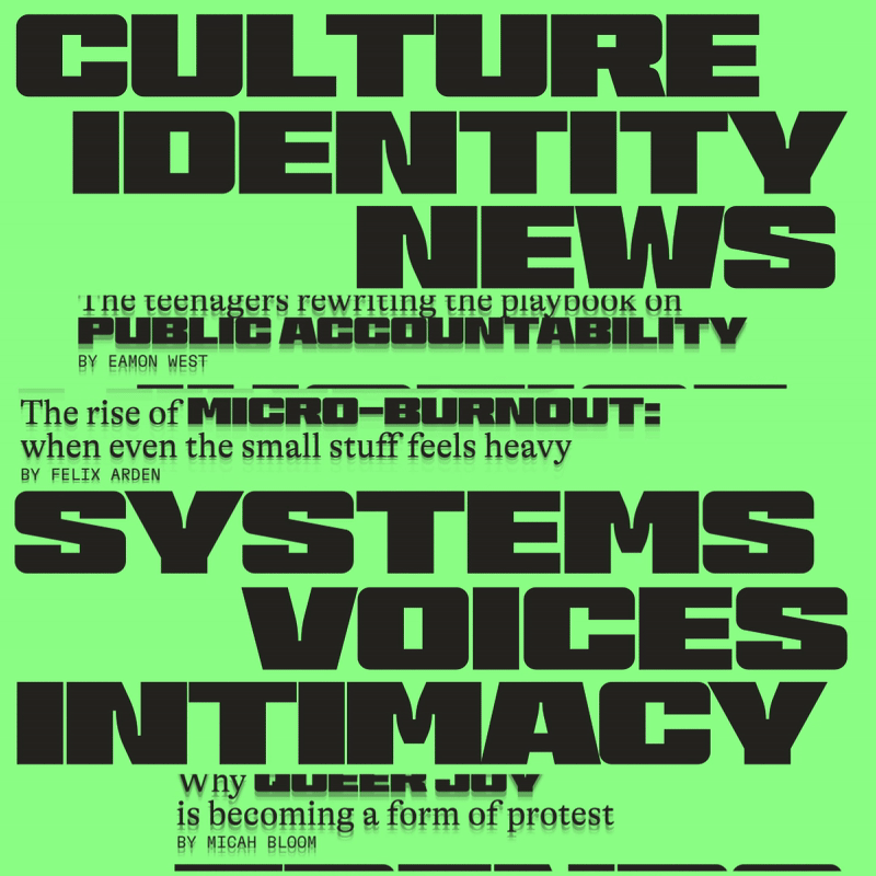 Typography is central to The News Movement’s identity. With thanks to The Designers Foundry for Brik, and Grilli Type for Alpina and GT America Mono, whose typefaces underpin the system’s clarity, contrast and editorial confidence.